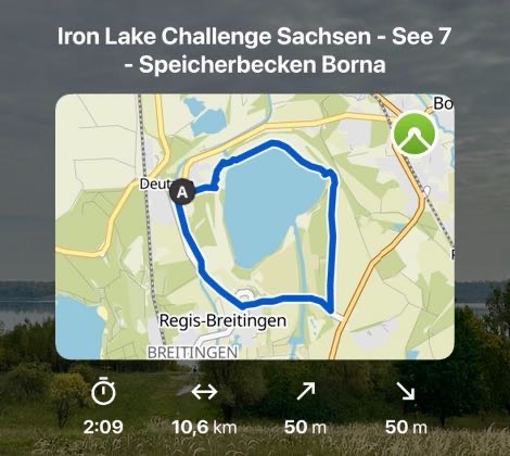 Nach 5 Monaten geht die Iron-Lake-Challenge in Sachsen nun mal weiter. Heut ist das Speicherbecken Borna – auch Adria genannt, obwohl ich nicht weiß, warum – an der Reihe. Dieser künstliche See, ein Hochwasserrückhaltebecken, wurde aus einem Tagebaurestsee noch in der DDR-Zeit von 1964 – 1980 gebaut. Seit 2010 finden Sanierungsmaßnahmen statt, da der See in verschiedenen Bereichen nicht mehr sicher war. Das dauert wohl noch bis 2029, voraussichtlich. Und so waren auch verschiedene Wege in Ufernähe gesperrt. Oft sah ich den See gar nicht, musste auf Radwegen entlang der Landstraße laufen und auch durch Wald und Wiesen. Das letzte Stück entlang der Pleiße war dann noch mal richtig schön, das Wetter spielte mit, ich „pausierte“ lange und konnte danach die fünfte Umrundung eines sächsischen Sees abschließen. Der See ist recht klein, aber vielleicht zählt er zu den zehn größten (Platz 7), weil er soviel Rückhalteflächen hat, die nicht gefüllt sind. Die Wasserfläche, die man sieht, scheint jedenfalls nicht riesig zu sein. Ich war recht schnell da drum herum, trotz vieler Sperrungen …