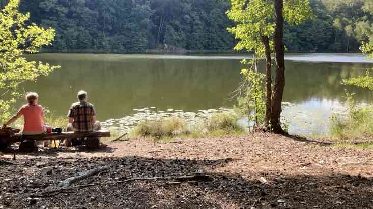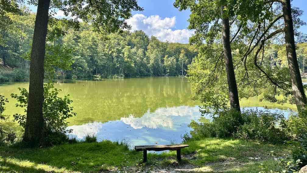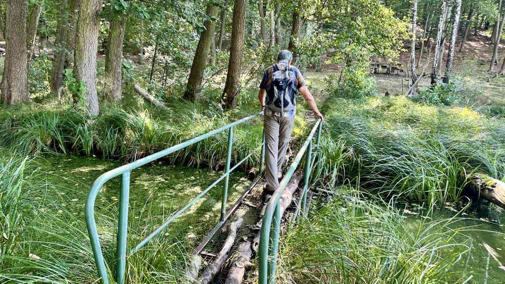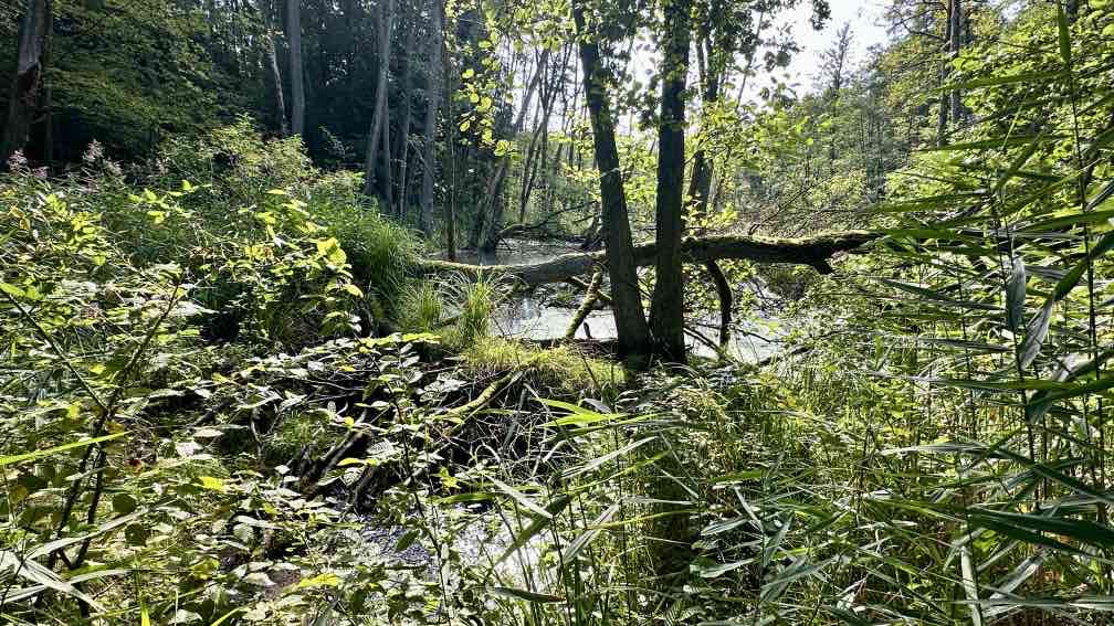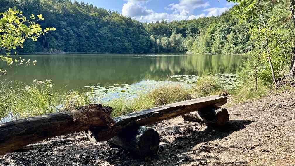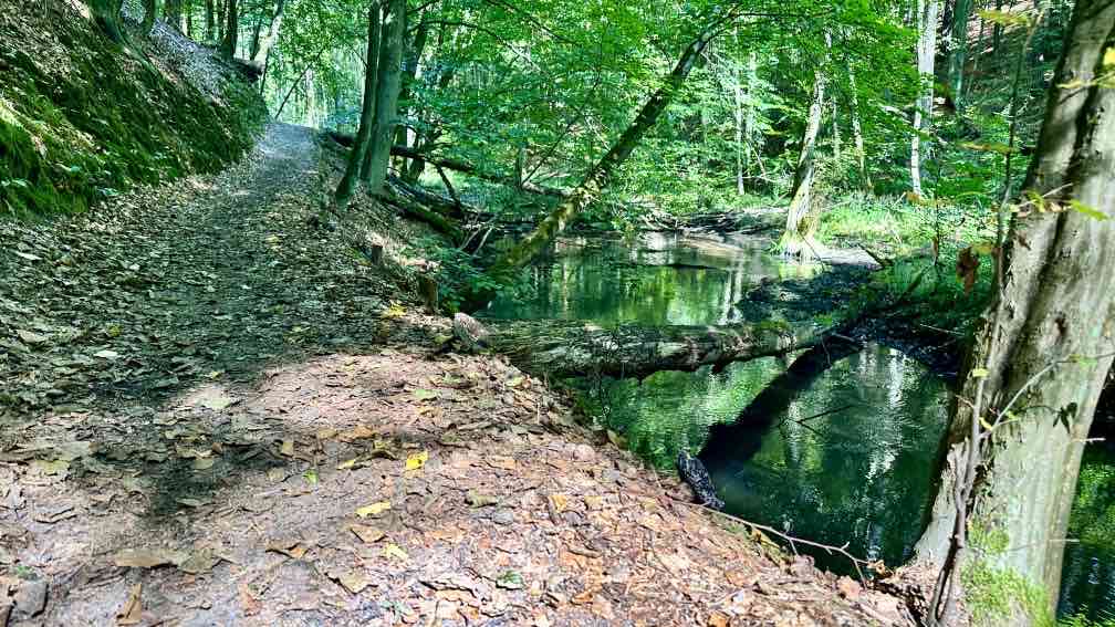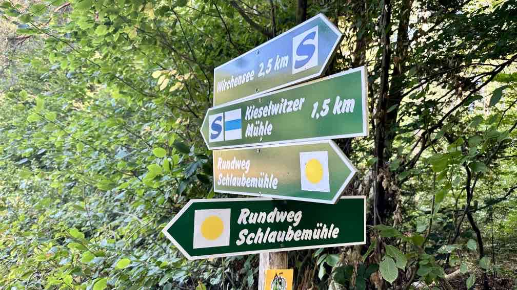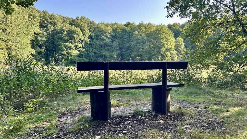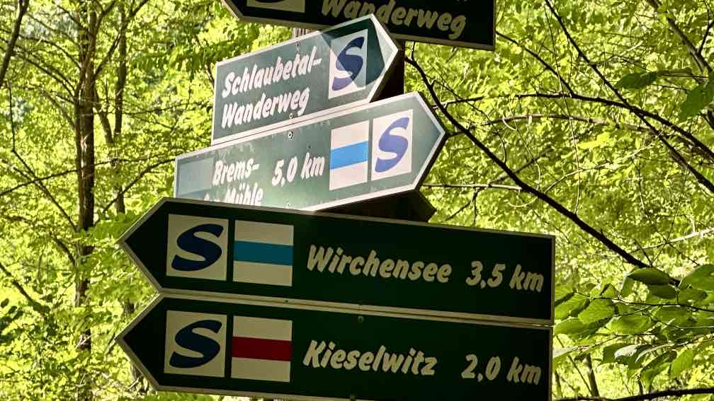 Wir nutzen die Gelegenheit, nach einem Besuch bei der Enkelin am Wochenende nun noch eine Wanderung da in der Nähe zu unternehmen, im wunderschönen Schlaubetal. Schon halb neun beginnen wir unsere Tour auf dem Wanderparkplatz an der Bremsdorfer Mühle. Der blaue Himmel strahlt, aber es ist noch recht frisch. Ein Trupp weißer Enten lagert auf unserem Weg, das sieht schon etwas ungewöhnlich aus. Aber sie lassen sich nicht von uns stören. Eine kleine Modellmühle klappert mit ihrem drehenden Mühlenrad, kurz danach noch eine zweite. Die Schlaube begleitet unseren Weg, einfach idyllisch. In ein paar Wochen wird es hier im bunten Herbstkleid noch schöner aussehen. Leider ist die Zeit des lauten Vogelgezwitschers zu Ende. Nur ein Schwarzspecht schimpft immer mal wieder und ein Bussard kreist irgendwo oben, wir hören ihn rufen. Wir laufen einen großen Teil „doppelt“, erst hin, dann zurück. Dazwischen eine Schleife mit einer Mittagsrast am Ziskensee, auf einer Uferbank in der Sonne, wie für uns gemacht. Es ist einfach nur schön. Und erst fast zum Schluss unserer Tour begegnen uns einige weitere Wanderer und ein Mountainbiker, vorher hatten wir das gesamte Gebiet für uns alleine. Ein Angler am Kleinen Treppelsee sitzt ebenso einsam, nur wir stören seine Ruhe, als wir uns über umgestürzte Bäume kämpfen. Noch schnell durch einen schmalen Wiesen und dann sind wir im Ziel. Schön war’s…