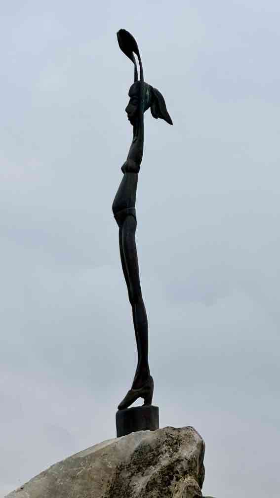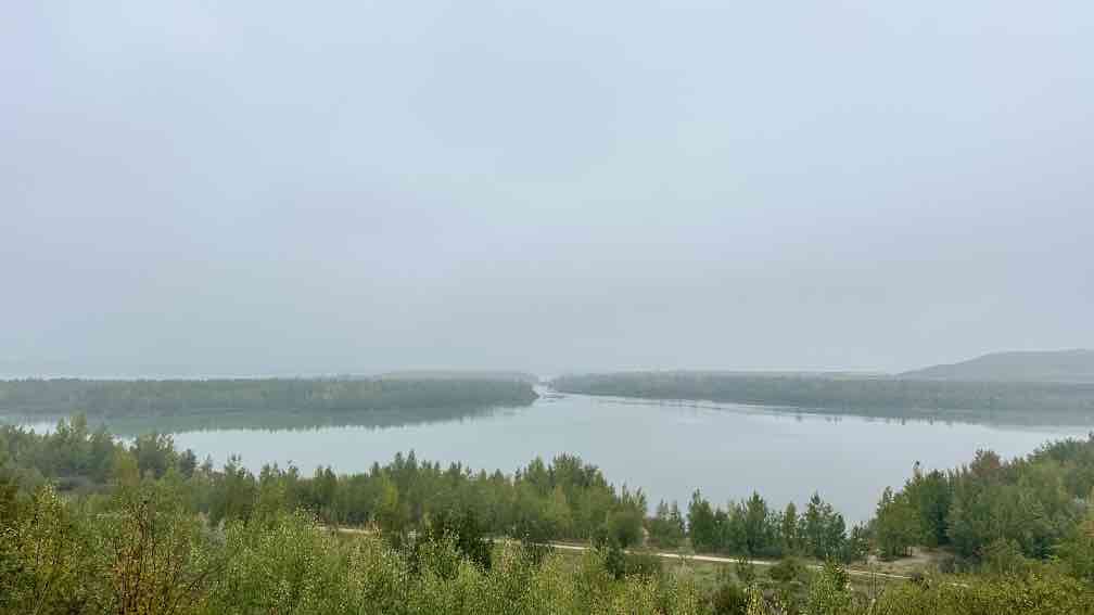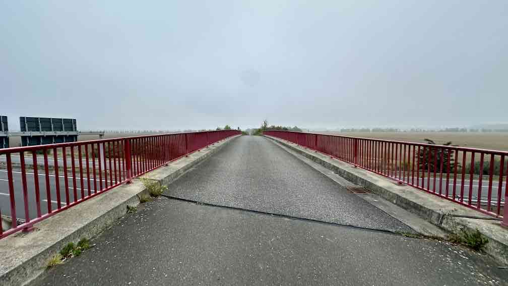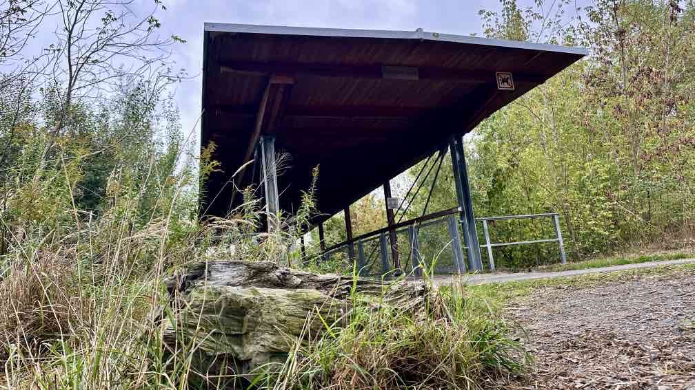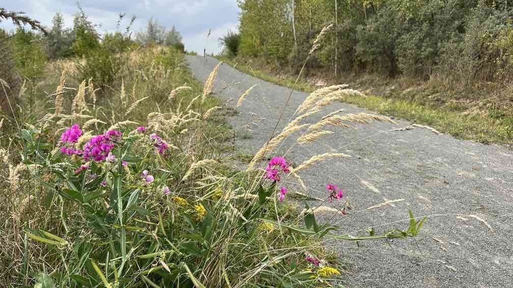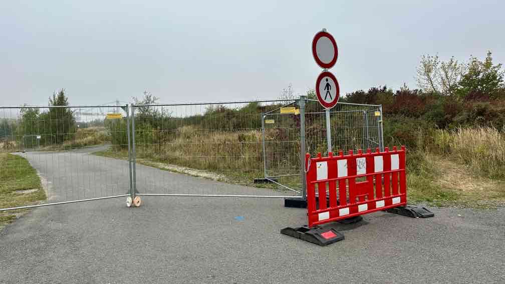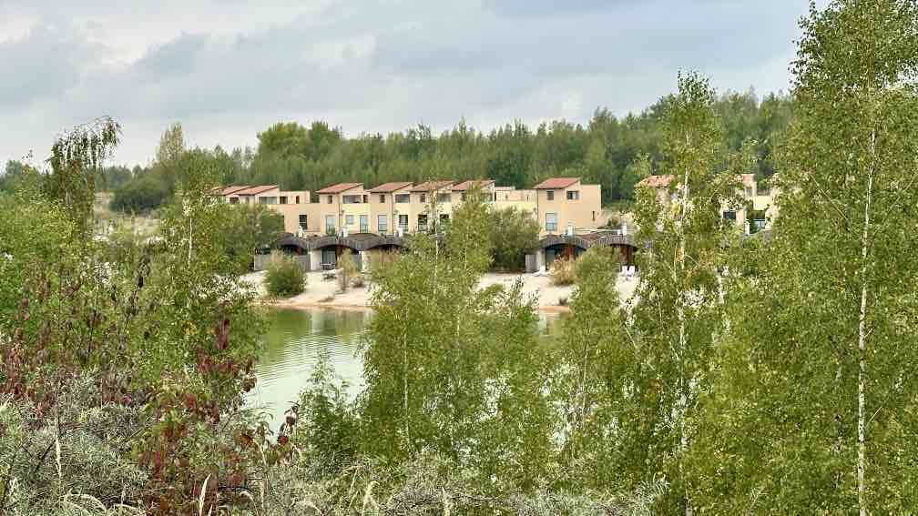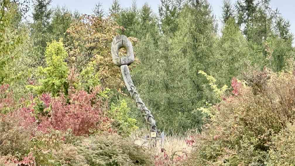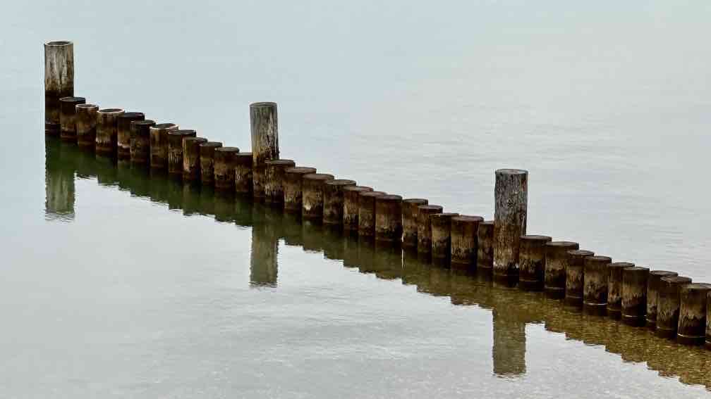 „Gefahrenabwehrmaßnahme“! Auch hier scheint es also Sanierungsmaßnahmen zu geben. Ich beginne einen Umweg, später gibt es die nächste Sperrung. Umleitung für Radfahrer und Fußgänger. Und so laufe ich eine weite Strecke über Felder, über die Autobahnbrücke, immer auf Asphalt oder Split. Und erst nachdem ich schon die Hälfte der heutigen Tour geschafft habe, gestattet mir der See, fast direkt neben ihm zu laufen. Schade, dass es heute so diesig ist, feuchte Luft, keine Sonne. Das hindert mich aber nicht, im Hafen von Lagovida auf einer Bank eine schöne lange Pause einzulegen. Danach bin ich allerdings arg durchgefroren, ziehe eine weitere Jacke aus dem Rucksack über. Mich überholen oft Radfahrer, aber Wanderer sehe ich keine. Dafür erkenne ich in der Ferne das Kraftwerk Lippendorf, die Vineta auf dem See – sie symbolisiert die verlorene Magdeborner Kirche und ist ein schwimmendes Mahnmal, aber auch ein Event-Ort für Hochzeiten und Kultur – , das Schiff „Wachau“ auf seiner Rundfahrt und auch die große Förderbrücke im Bergbau-Technik-Park. Diesen Park samt der daneben liegenden Zentraldeponie Gröbern – einem Berg, der bis 2026 weiter auf 196 Meter anwachsen wird – habe ich nur aus der Ferne gesehen, da die Umleitung zu Beginn weitläufig daran vorbei führte. Ja, dieser See ist wieder ein Tagebausee, der seit 2001 den ehemaligen Tagebau Espenhain füllte, aber ich fand ihn schon recht „laufenswert“, da er nicht so geradlinig, so quadratisch wie manch anderer Tagebausee daherkommt. Und man konnte in der zweiten Hälfte auch oft auf Pfaden wandern und nicht immer auf dem Radweg. Viele schöne Bänke laden zum Ausruhen ein, nur leider war dafür heute das Wetter nicht richtig geeignet. Vielleicht kommen wir in zwei Jahren wieder her, den 100. Geburtstag von der Mama auf Vineta feiern …