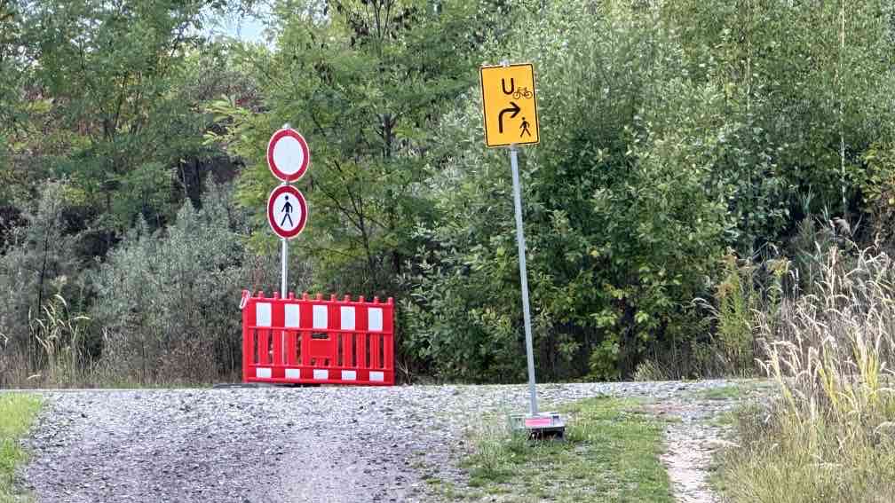 Gestern noch mit dem Schiff über den See geschippert, so steht heute seine Umrundung auf dem Plan. Ich laufe 100 Meter und schon versperrt mir eine Barriere das Weiterkommen.