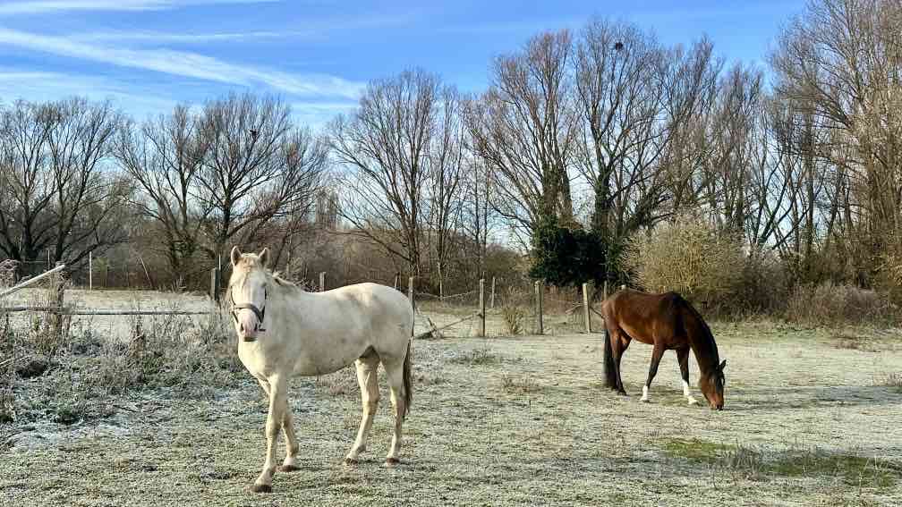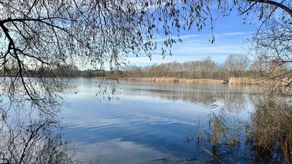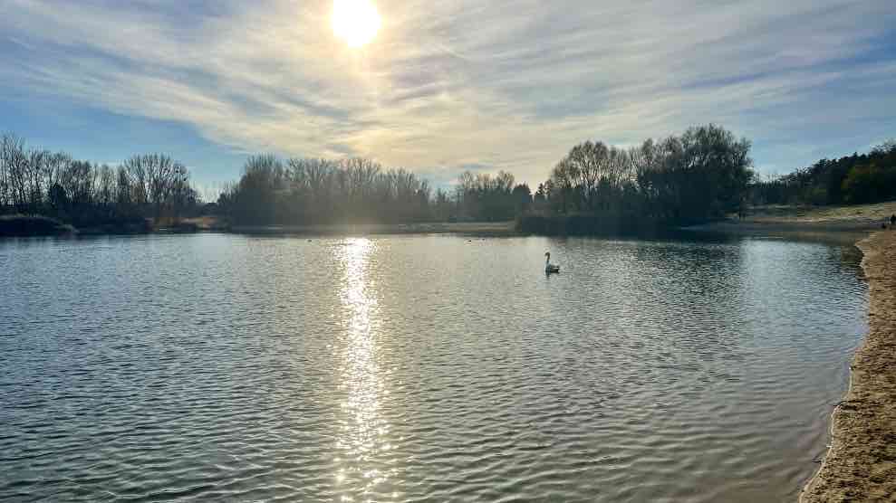 Die nächste Seen-Challenge steht an. Die um die Berliner Seen. Bei minus drei Grad beginnen wir die Tour, eine der kürzesten, die ich je um einen See gemacht habe. Eigentlich sind es sogar drei Seen, Habermannsee, Butzer See und Elserseedie – zusammengefasst die „Kaulsdorfer Seen“. Und addiert scheinen sie wohl sogar das siebtgrößte Gewässer Berlins zu sein. Da es nur um Seen geht, die Berlin ganz allein gehören und die es sich nicht mit Brandenburg teilen muss, will ich es mal glauben. Den ersten der drei kleinen Seen sehen wir nur einmal kurz durch einen Zaun, nicht schlimm, denn die im Reif glitzernden Wiesen, Pflanzen und Bäume sind ein toller Ersatz. An den beiden anderen Seen gibt es Uferwege, von denen man aus die Schwäne, Blesshühner und Enten beobachten kann. Die Schwäne jagen sich gegenseitig, scheint etwas Konkurrenz zu herrschen. Anders als bei den vielen Hunden, die hier ihre Herrchen und Frauen ausführen. Sie scheinen sich alle zu verstehen und jagen fröhlich durch die Wiesen und entlang der Ufer, also ich meine die Hunde 😅. Das Wetter ist ja trotz der Kälte heute ideal…