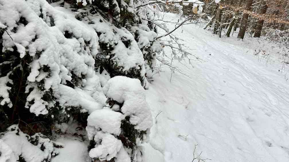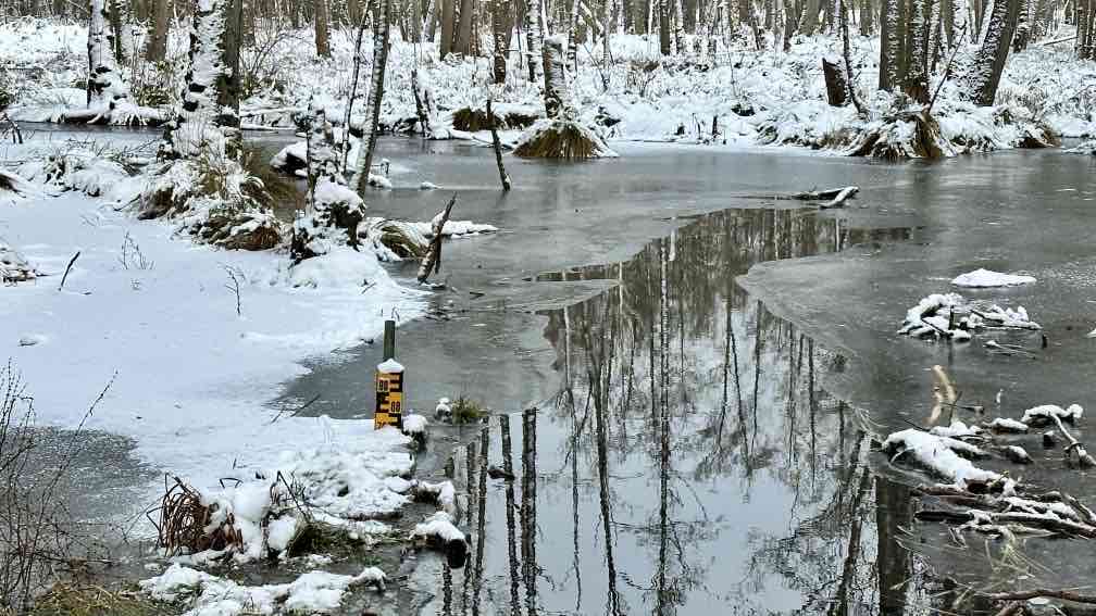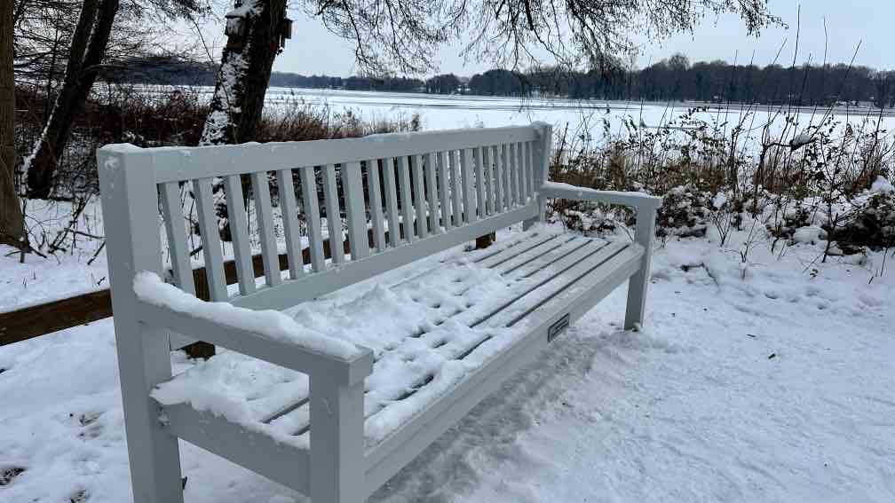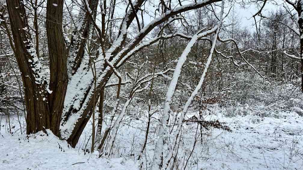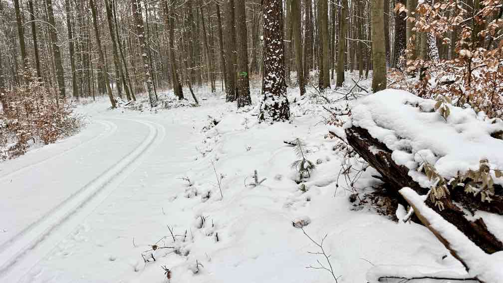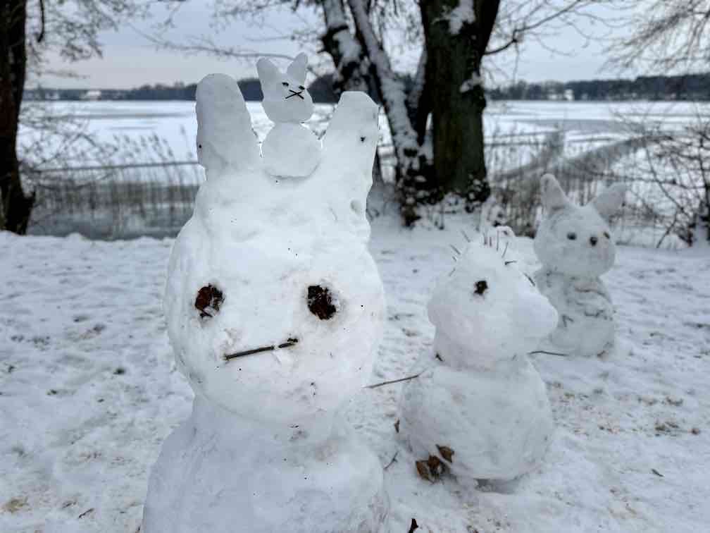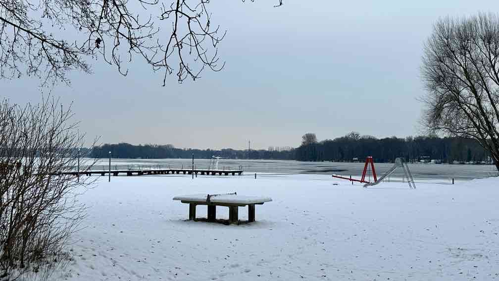 Nach einem Termin in Neuruppin bietet es sich an, eine Wanderung dranzuhängen. Bei den Wetterverhältnissen wähle ich einen ordentlichen Wanderweg, denn vom Bus aus habe ich schon gesehen, dass hier mehr Schnee als in Rheinsberg liegt. Also führt mich mein Weg zuerst am Ruppiner See – auf leicht vereisten Wegen – entlang und dann rüber nach Molchow – größtenteils Straße, dann ein schöner Uferweg. Von da aus sind es nun Waldwege, die zwar eine Schneedecke haben, aber nicht glatt sind. Trotzdem achte ich auf jeden Schritt, habe keine Lust mich hier „retten“ lassen zu müssen. Ziel ist Kunsterspring. Wunderschön sehen die schneebedeckten Tannen aus. Ein seltener Anblick hier in der Ruppiner Schweiz. Inzwischen fängt es sogar wieder an zu schneien. Es soll heute Abend wohl noch richtig ungemütlich werden. Also los jetzt, weiter. Leider war ich zu schnell unterwegs, der geplante Bus fährt erst in einer knappen Stunde. Oder zu langsam, der vorhergehende Bus fährt an mir vorbei, als ich aus dem Wald komme. Also packe ich noch ein kleine Strecke hinten dran, denn bei der Kälte möchte ich nicht an der Haltestelle rumstehen und warten. Und so endet meine Winterwanderung einen Ort weiter. Bei der nächsten Tour im Schnee nehme ich Stöcke mit …