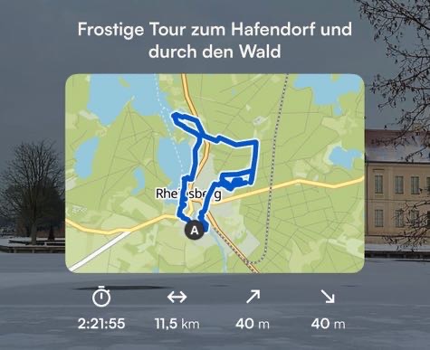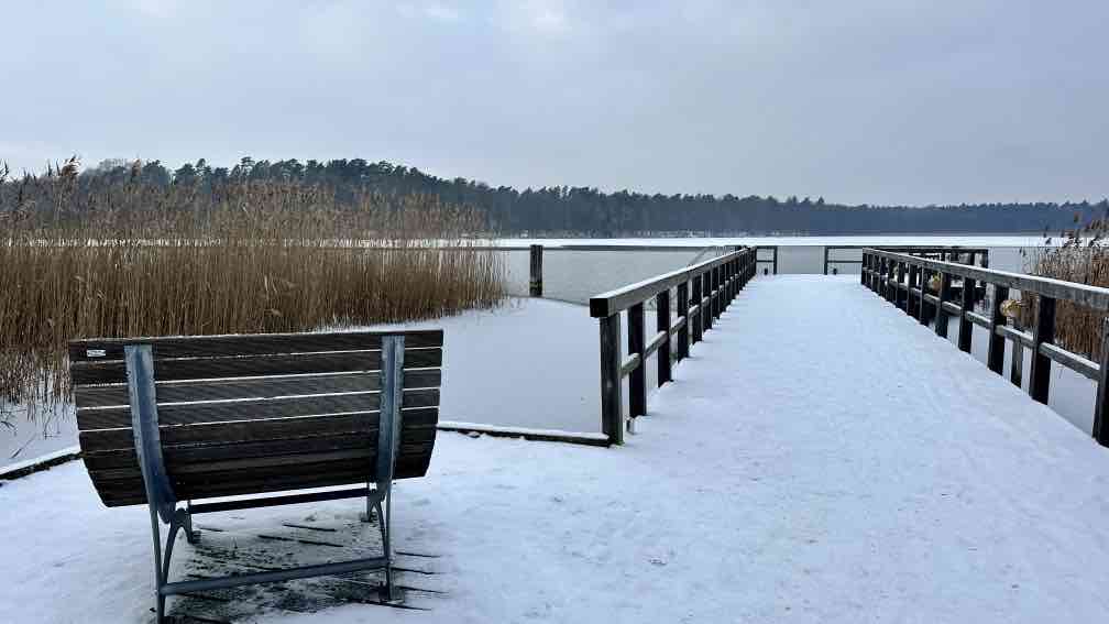 Das erste Mal wieder über 10 km und das Knie hat nur unwesentlich geschimpft. Das Winterwetter hat sein Bestes dazugetan, auch wenn die Sonne fehlte. Entlang der Seepromenade, einmal weiter durchs Hafendorf, kurz geplauscht mit zwei Hafendorfferienhauseigentumsbewohnern aus Thüringen, die sich hier sehr wohl fühlen, quer über die Landstraße in den. Wald hinein und dann zurück nach Hause. Im Wald habe ich noch versucht, einen kleinen Hund wieder zu finden, die Bella, die ihrem Frauchen entwischt und einen anderen Frauchen hinterhergelaufen ist. Dachte ich, weil ich Bella gemeint habe zu sehen, auf ihren Abwegen. Morgen muss ich erstmal anrufen, ob Bella wieder glücklich zu Hause angekommen ist…