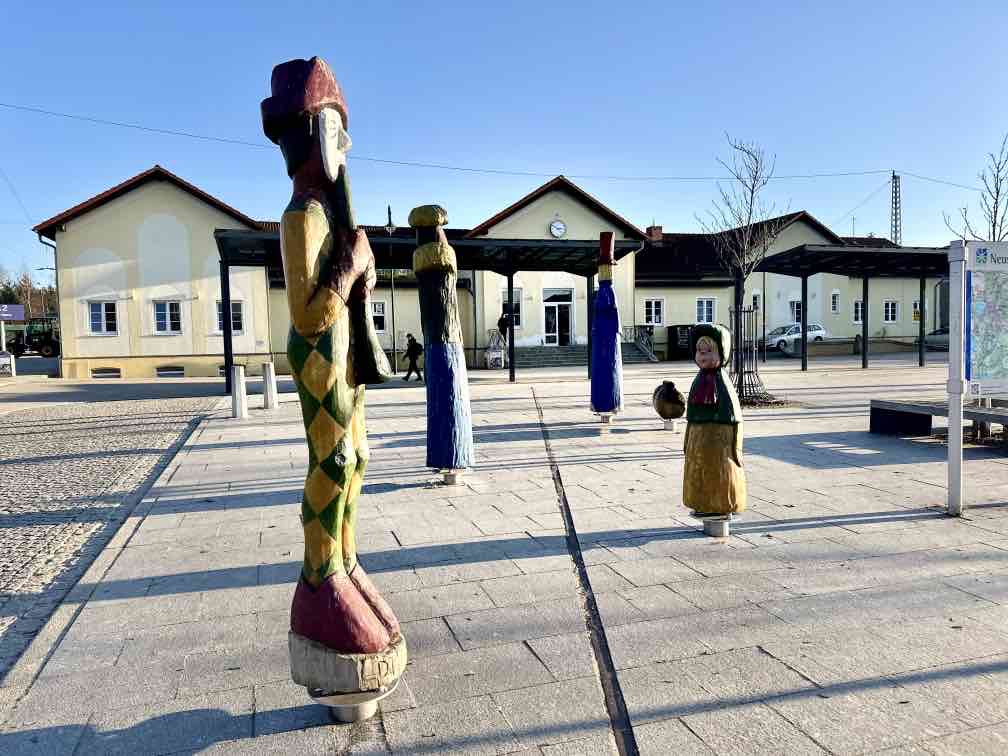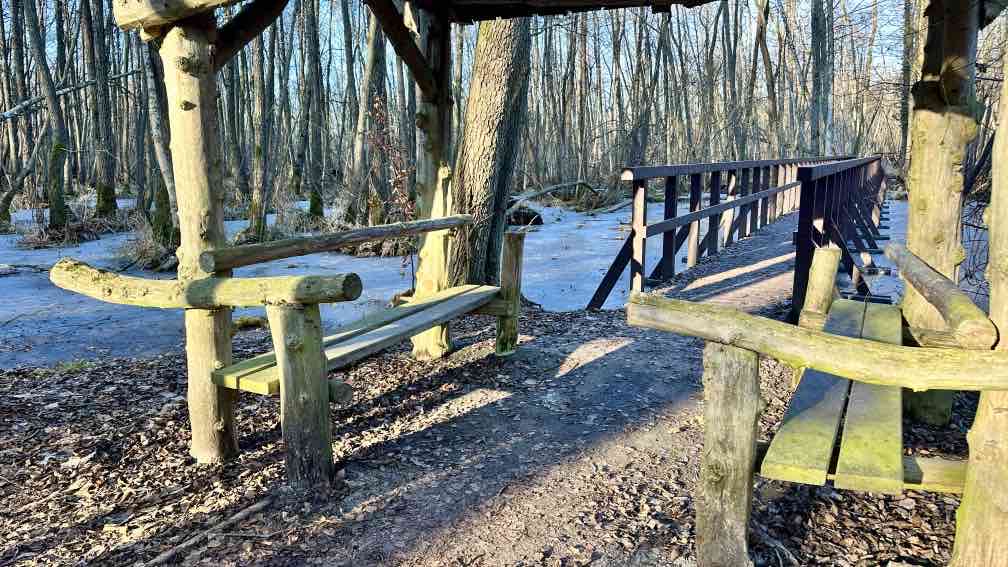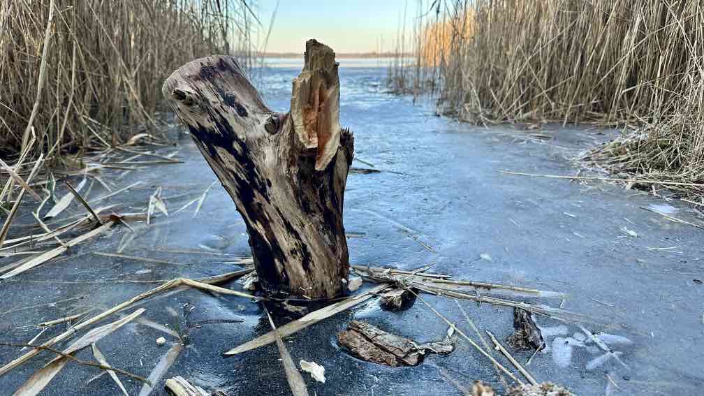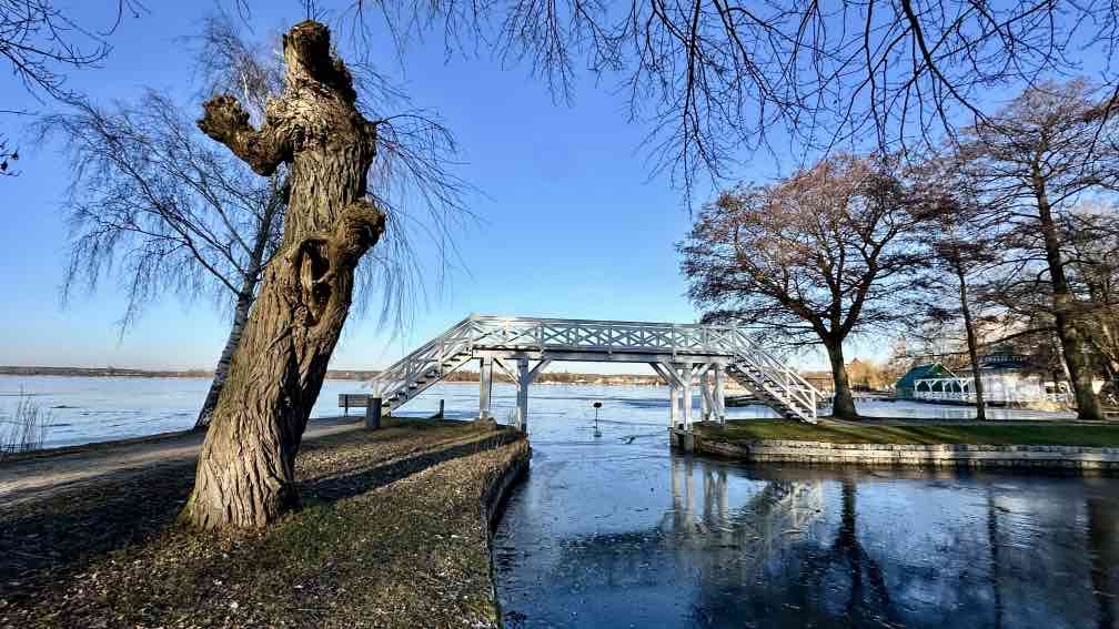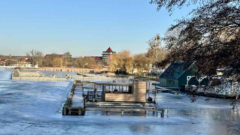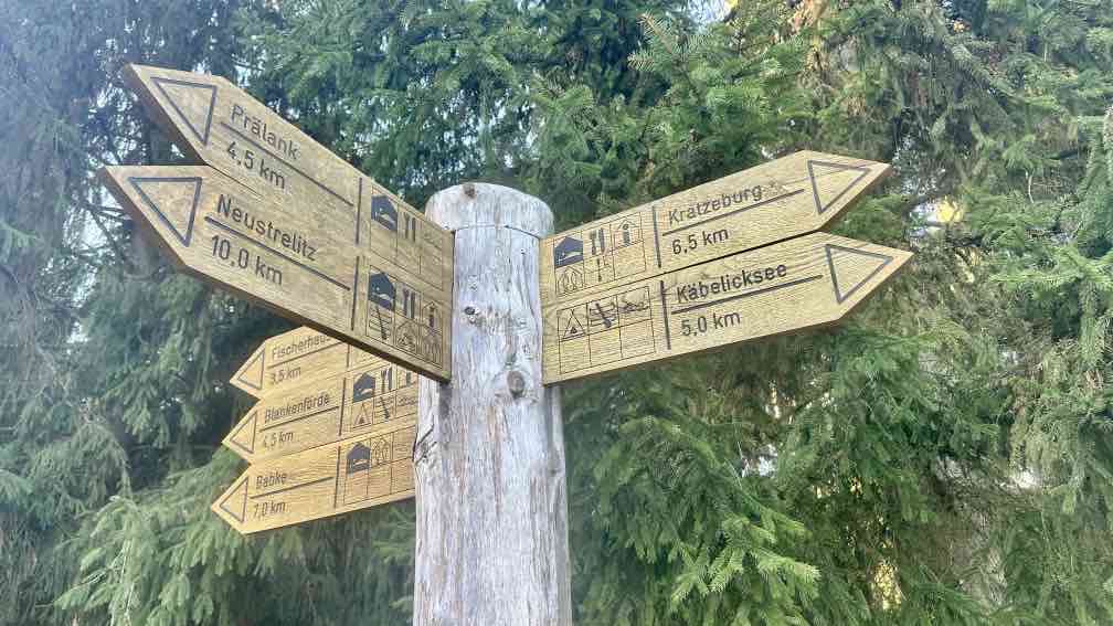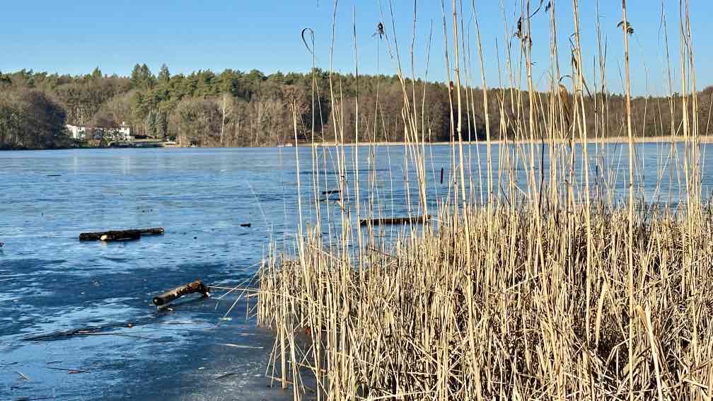 Eine Woche faul auf dem Sofa rumgelegen. Jedenfalls was das Wandern anbelangt. Dafür ist aber die Gewerbeabrechnung fertig. Auch was wert. Aber heute!! Die Sonne soll strahlen. Also nutze ich das erste Mal richtig mein D-Ticket und fahre nach Kratzeburg. Bei Null Grad, zumindest gefühlten, stapfe ich los. Natürlich verlaufe ich mich kurz am Anfang, aber das gehört eben fast mit dazu. Ohne wäre langweilig. Ein paar hundert Meter vor mir ein anderer Wanderer, immer mal wieder wechseln wir uns an der Spitze ab, überholen ohne einzuholen. Wahrscheinlich kleine Abwege oder andere Wegführung. Am Großen Prälanksee ist meine Mittagsrast, in der Sonne stehend, Kohlrabi kauend. Eine schöne Tour, die Wege – allesamt Müritz-Nationalparkwege – sind weitgehend eisfrei.. Trotzdem habe ich meine Wanderstöcke dabei, man weiß ja vorher nie. In Neustrelitz bummle ich einmal quer durch die Stadt, immer wieder schön, der große weite Marktplatz. Nicht so schön ist es, dass der Zug eine halbe Stunde Verspätung hat …