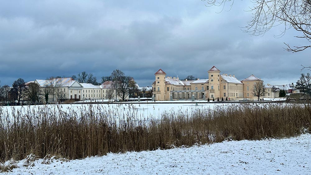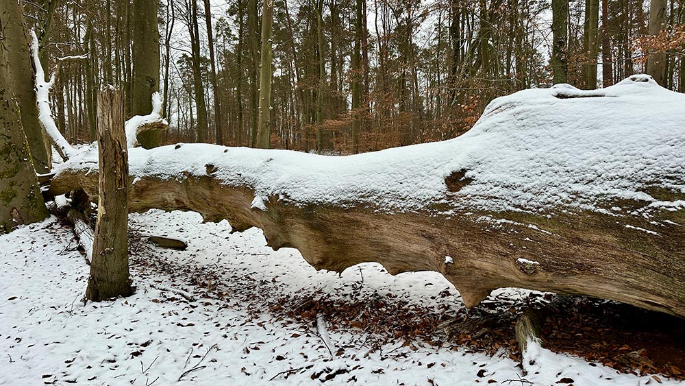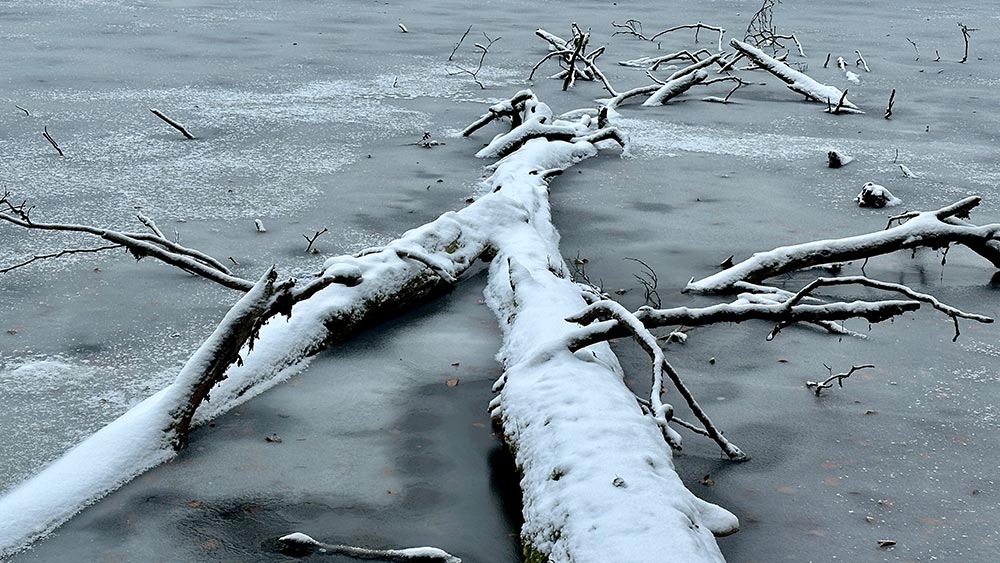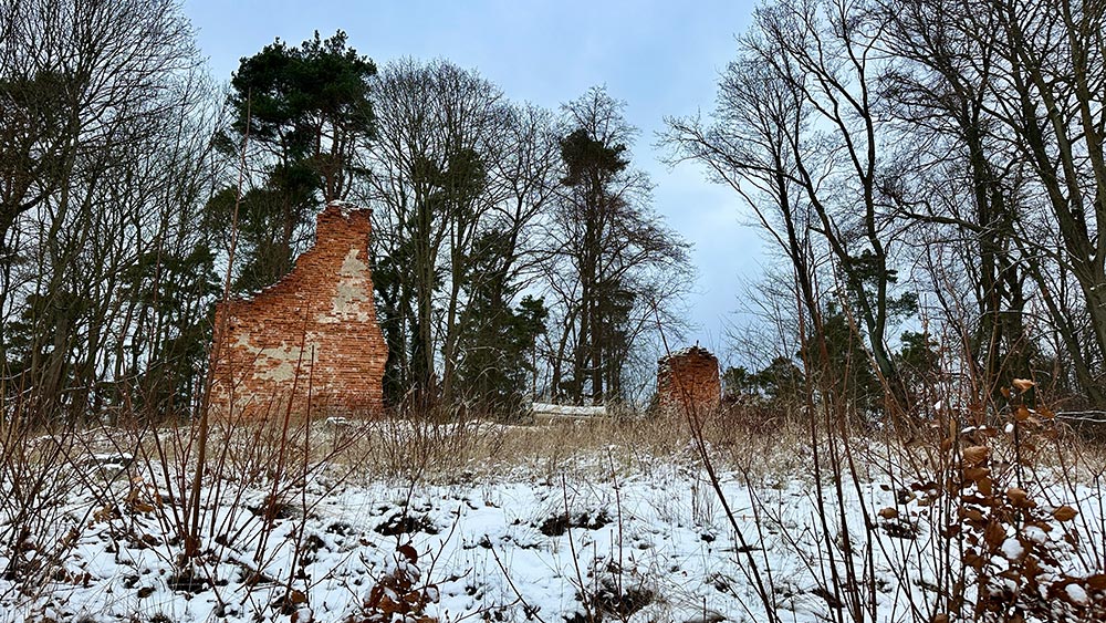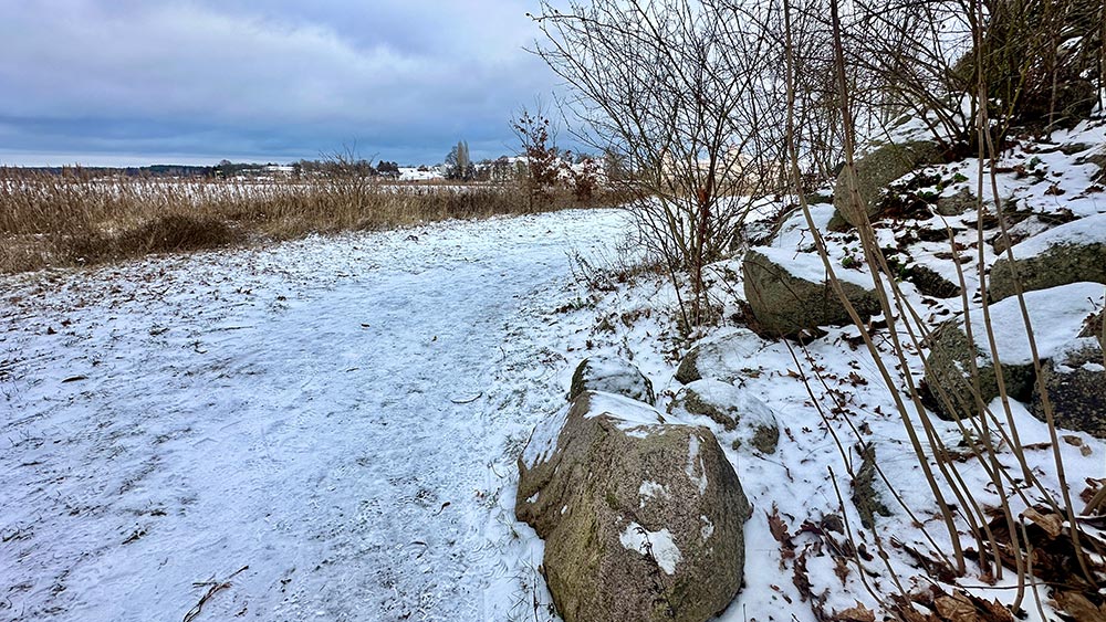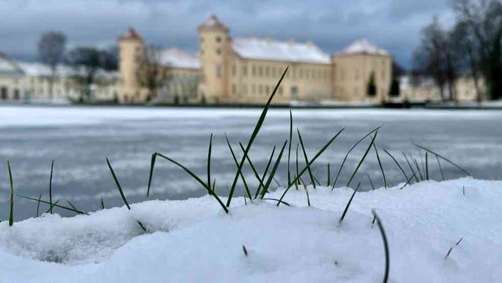 Ich habe so der Wetter-App vertraut, um bei frischen Schnee und Sonnenschein ein paar Fotos für meinen nächsten Panoramakalender 2027 einzusammeln. Aber nichts war, kein einziger Sonnenstrahl, kein weißer Pulverschnee. So wird es eben „nur“ eine kleine frostige Runde durch den Schlosspark und den Boberower Wald. Auch schön …