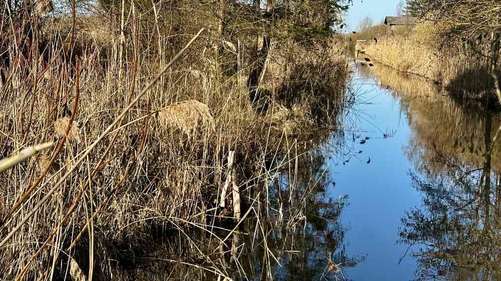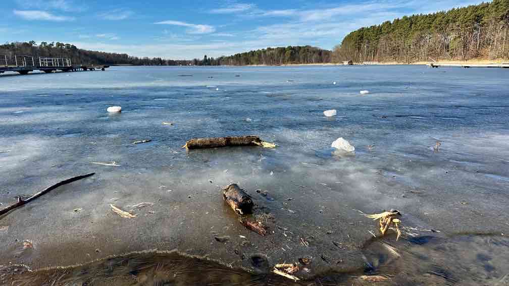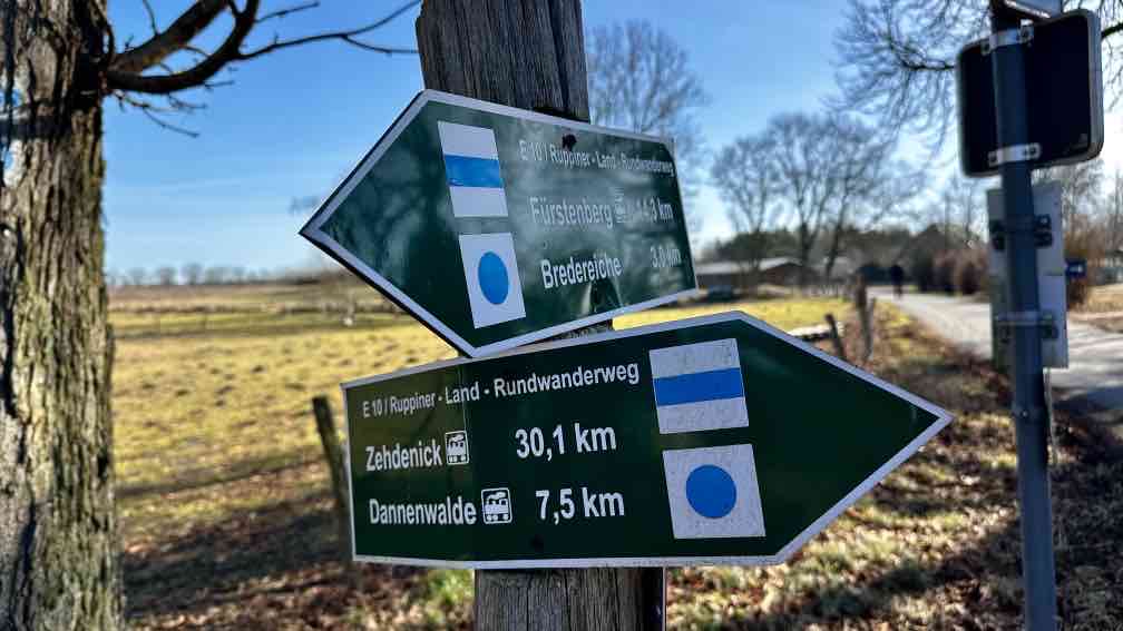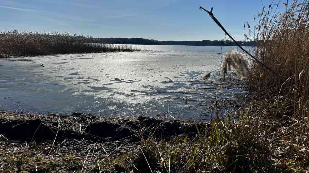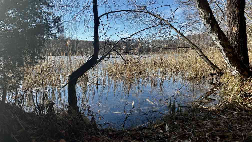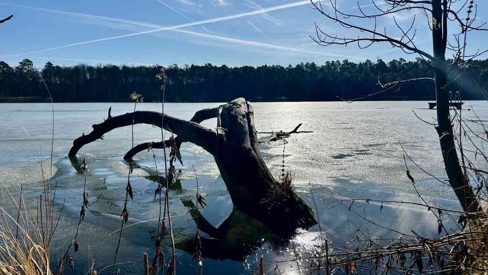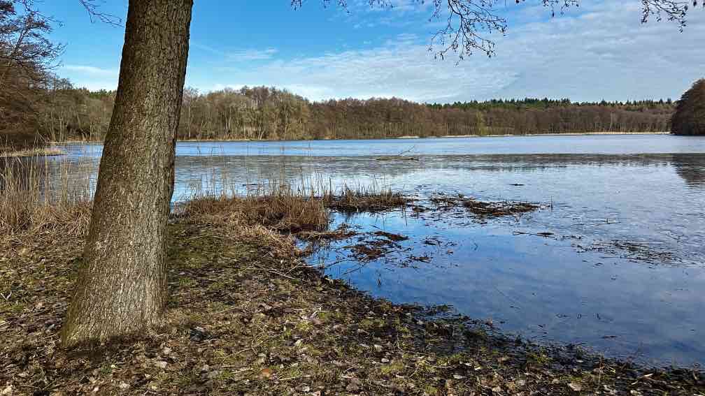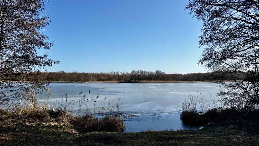 Ich setze mich in mein Auto und fahre ein paar Kilometer nach Mildenberg, an meinen heutigen Startpunkt. Es ist noch recht frostig, aber die Sonne strahlt. Nach einem langen Weg über die Felder gelange ich zum Havelradweg, den ich aber bald wieder verlassen kann. Und nun geht es idyllisch immer zwischen den Torfstichen entlang. Ich bin unterwegs im Flora-Fauna-Habitat „Zehdenick-Mildenberger Tonstiche“. Bekannt ist diese Gegend ja für Ihre Ziegeleien, der Ton dafür wurde abgebaut, zurück blieben tiefe Löcher, füllten sich mit Grundwasser und erfreuen heute meine Augen als diese schönen Seen. Links einer, rechts einer, mal ein morastiger Trampelpfad, mal ein schöner Waldweg. Immer wieder lege ich kleine Pausen ein. Schließlich gelange ich zur Havel. Wie schnell doch die Zeit vergeht, nun ist es schon fast drei Jahre her, dass ich die komplette Havel abgewandert bin – ich erinnere mich gern an den Juni 2023. ich genieße den Blick, vor mir die Sonne, neben mir der Fluss. Bald schon bin ich in Zehdenick, nutze ein paar Nebenstraßen und lande am Bahnhof. Ein Bus bringt mich zurück nach Mildenberg, ich bin der einzige Fahrgast …
