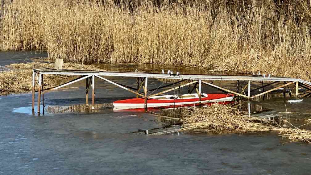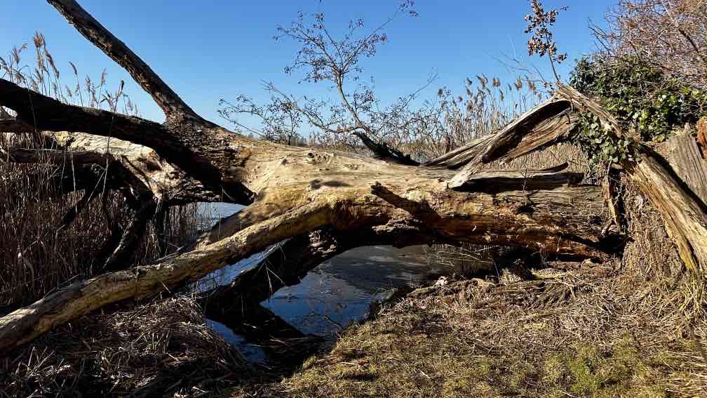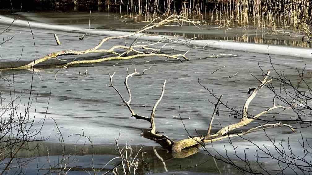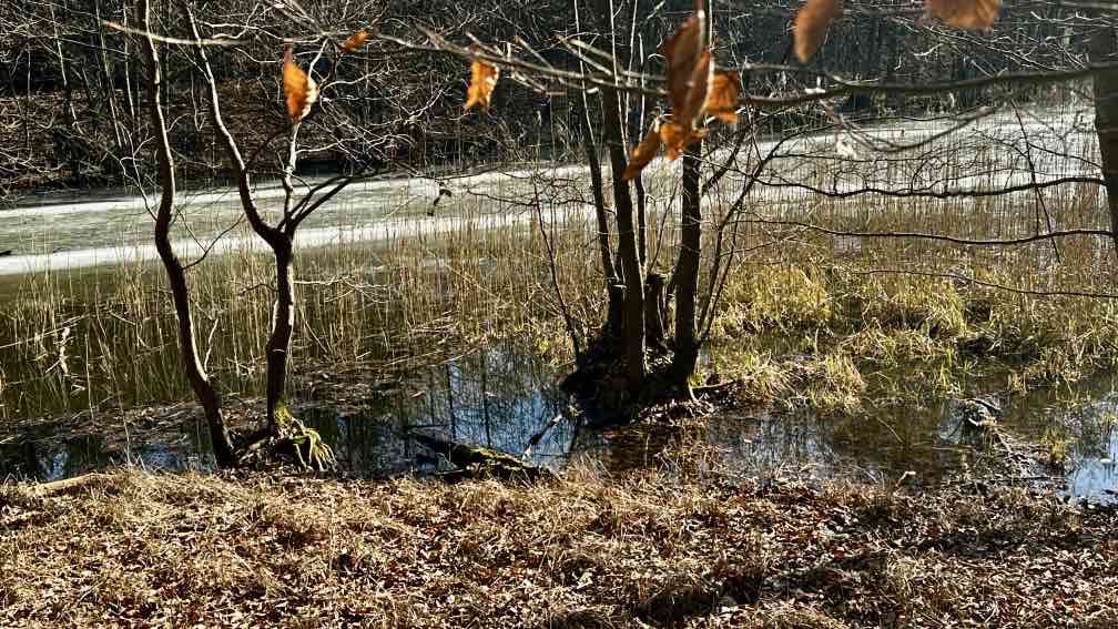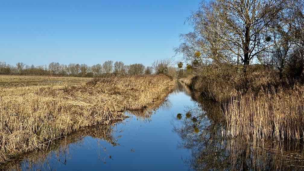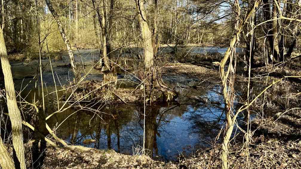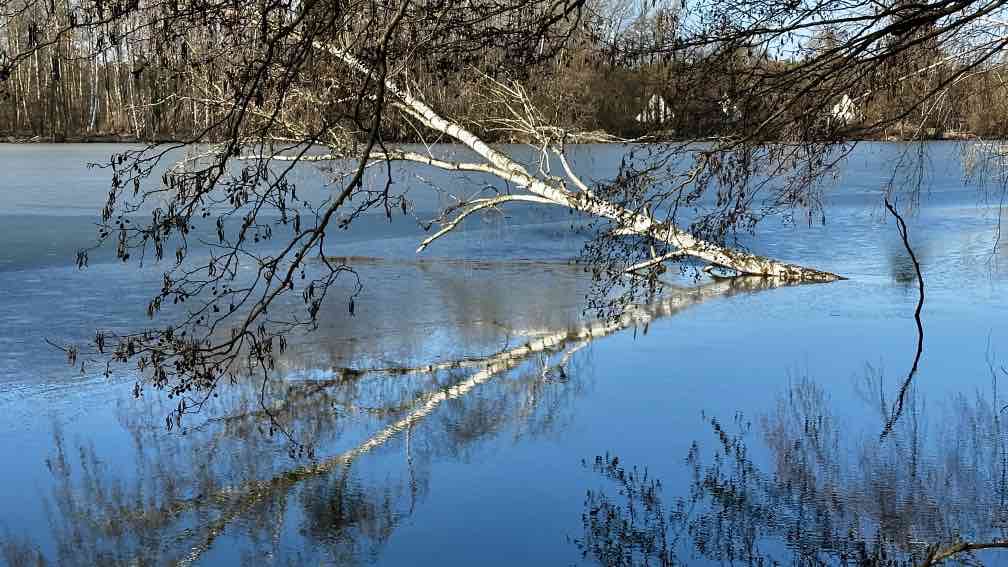 Ich setze mich in mein Auto und fahre ein paar Kilometer nach Mildenberg, an meinen heutigen Startpunkt. Es ist noch recht frostig, aber die Sonne strahlt. Nach einem langen Weg über die Felder gelange ich zum Havelradweg, den ich aber bald wieder verlassen kann. Und nun geht es idyllisch immer zwischen den Torfstichen entlang. Ich bin unterwegs im Flora-Fauna-Habitat „Zehdenick-Mildenberger Tonstiche“. Bekannt ist diese Gegend ja für Ihre Ziegeleien, der Ton dafür wurde abgebaut, zurück blieben tiefe Löcher, füllten sich mit Grundwasser und erfreuen heute meine Augen als diese schönen Seen. Links einer, rechts einer, mal ein morastiger Trampelpfad, mal ein schöner Waldweg. Immer wieder lege ich kleine Pausen ein. Schließlich gelange ich zur Havel. Wie schnell doch die Zeit vergeht, nun ist es schon fast drei Jahre her, dass ich die komplette Havel abgewandert bin – ich erinnere mich gern an den Juni 2023. ich genieße den Blick, vor mir die Sonne, neben mir der Fluss. Bald schon bin ich in Zehdenick, nutze ein paar Nebenstraßen und lande am Bahnhof. Ein Bus bringt mich zurück nach Mildenberg, ich bin der einzige Fahrgast …