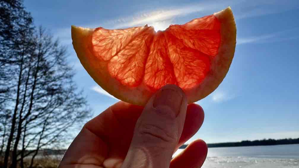 Ich glaube, heute sind am frühen Morgen noch Minusgrade. Doch das soll uns nicht schrecken, tapfer stehen wir pünktlich um 7:45 Uhr auf der sonnigen Wiese, bereit den Tag mit dem SunnySide-Swing zu beginnen. Schnell wird wohl auch dem Letzten warm. Als Belohnung wartet auch schon der Morgen-Drink aus Erdbeere, Orange und Tomate. Was man so alles mischen kann! Erstaunlich. Unsere Fastenwanderung starten wir heute beim Weihnachtsmann in Himmelpfort. Hier bin ich auf bekannten Wegen unterwegs. Fünf Seen besuchen wir heute, alle sind immer noch zugefroren. So wird es wieder nichts mit einem kalten Bad, auch nicht für die Füße. Ich kann es verschmerzen. Allein ist unsere Gruppe unterwegs, niemand begegnet uns. Wir genießen die Natur, erfahren etwas über die verschiedenen Baumarten, laufen zu zweit oder im Gänsemarsch wunderschöne Wald- und Uferwege, natürlich auch viel quasselnd, man tauscht sich aus. Eine tolle Truppe. Wer mal richtig Ruhe haben möchte, lässt sich etwas zurückfallen und entspannt beim Laufen. Alles ist möglich. Fünf Seen wurden uns angekündigt, Haussee, Piansee, Moderfitzsee, Sidowsee und Stolpsee. An manchem Ufern pausieren wir, einen sehen wir nur von einer Brücke aus und einer ist nur durch die Bäume zu sehen. Es gibt zwar überall Uferwege, aber dann würde die Strecke zu lang werden. Schließlich befinden wir uns im Fastenmodus und freuen uns über moderate Wanderungen. Die halbe Grapefruitscheibe zum Mittag ist natürlich heißersehntes Highlight. Die Tour ist heute kürzer als gestern, aber das macht nichts – es war wunderschön. Wieder im Zimmer angekommen, wartet der Leberwickel. Und danach schwänze ich das tägliche Yoga, denn ich habe einen Massagetermin, das ist doch herrlich …