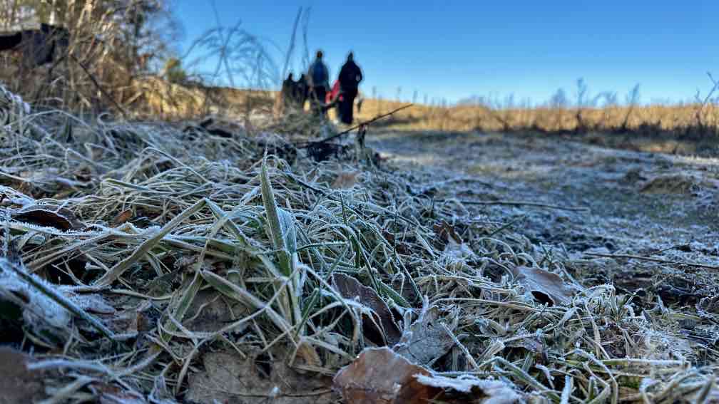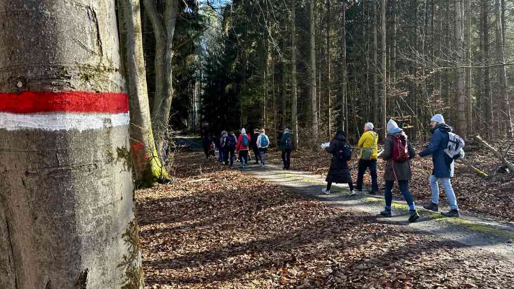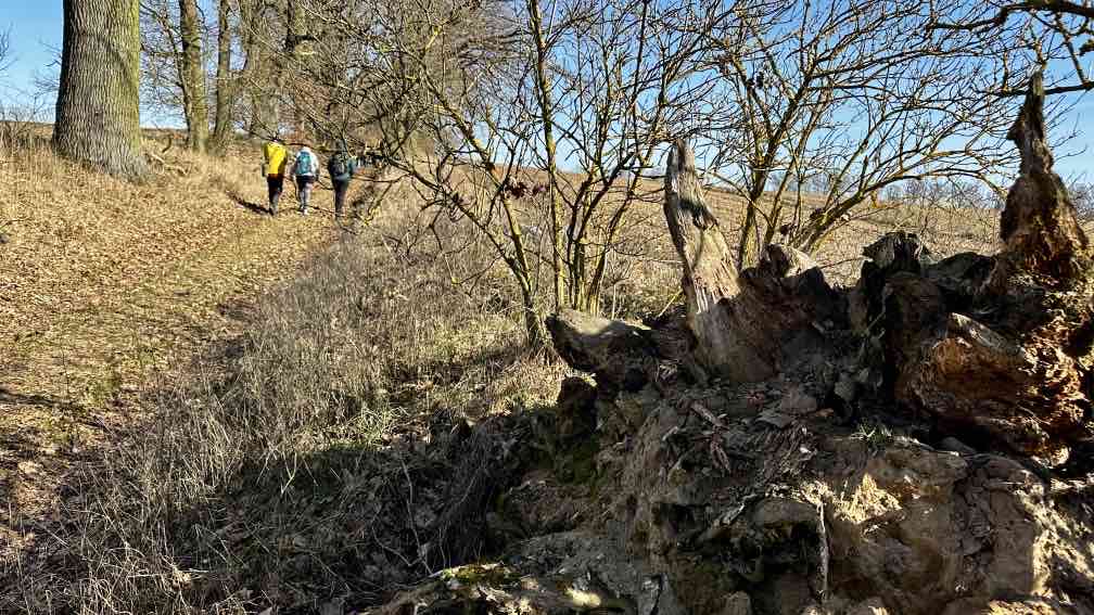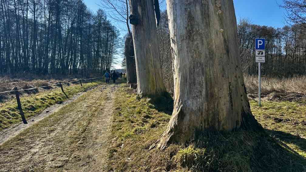 Nach dem Frühsport werden wir von Phillip begrüßt, einem Ranger der Naturwacht. Mit ihm werden wir heute eine Vogelwanderung unternehmen. Er lässt uns – stehend auf einer frostigen Wiese auf dem Storchenhof – erstmal in die Umgebung lauschen. Ja, wir sind auf dem Land, Maschinen brummen, weit hinten ruft ein Kranich und ein Specht klopft. Dann nochmal horchen mit Fokus auf die Vögel: In der Ruhe, mit geschlossenen Augen hört man plötzlich ganz viel. Die Haussperlinge, natürlich Kranich und Specht, aber auch ein Grünspecht „lacht“ drüben im Wald. Nach unserem leckeren Frühstückssaft aus Orange, Karotte, Fenchel und Pastinake – lecker wie immer – geht auch schon die Wanderung los. Erster Halt an der Rinderweide, Phillip hat die Bachstelze und ein Hausrotschwänzchen entdeckt. Wenn sie zurück sind, beginnt für ihn der Frühling. Wir wissen es schon die ganze Woche, denn die Sonne strahlt jeden Tag! Und so geht es weiter, immer wieder machen wir kleine Pausen, hören von den Feldlerchen, sehen eine Grauammer, hören einen Kleiber und bekommen ihn erklärt und erfahren, wie man sich den Gesang der Goldammer merkt. Ich glaube, dass wird Vogelstimme Nr. 1, die ich dieses Jahr lernen möchte. Ich bin bescheiden, es sollen nur zwei im Jahr werden. Es ist eine tolle Wanderung, es geht entlang der Felder und der Wiesenraine, durch Buchen- und Mischwälder. Es ist erst März, aber wir hören viel. Man muss nur zuhören …